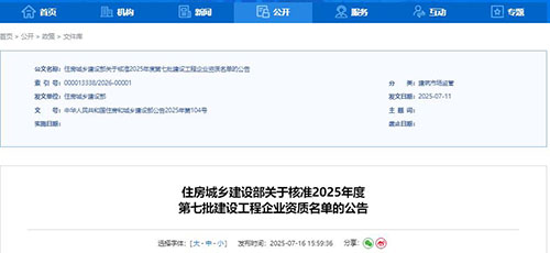 住建部公布2025年第七批建设工程企业资质核准名单 | |
