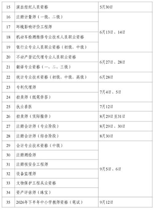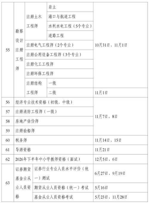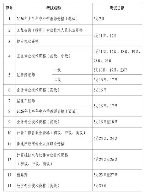 | 2026年专业技术人员职业资格考试时间公布 | |